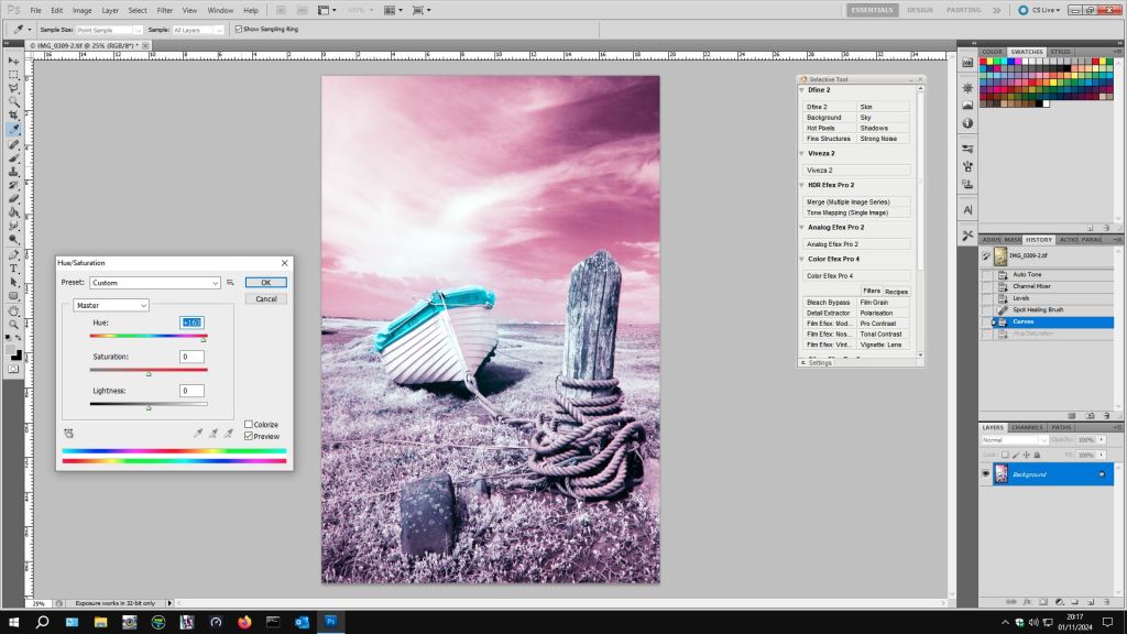 It occurs to me that to get coloured “infrared images” we have to let a bit of visible light in too and experiment with the image using a myriad of adjustments using channel mixing, layers, curves to mention a few, to suit your individual taste. So far, I have only given you the basic version of channel mixing. Some mixes involve adjusting the green slider, having different mixtures of the red and blue channels or a combination of all these. Even then you are just scratching the surface. I mentioned Rob Shea a few posts ago, he provides a whole range of Camera Profiles for different cameras. He also provides a wide selection of Photoshop Actions which can be imported into Photoshop – instead of making the adjustments of Channel Mixing, Layers and other adjustments, you click on an “Action” and the effect of several adjustments are applied in one click. Follow these links for more:-
