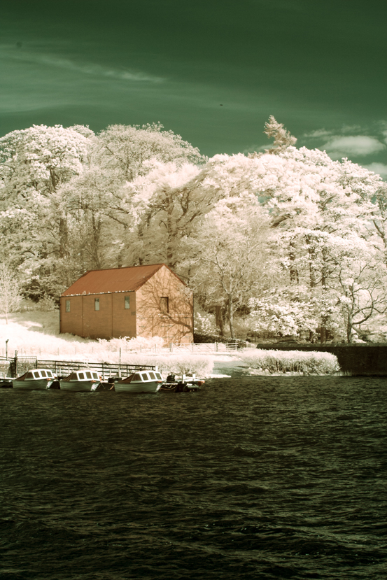 I said in my last post that I would post some of my infrared photographs that I have processed as colour. Here is a selection, firstly from the camera that had been converted with a 720 nm filter over the sensor, then from the full-spectrum camera with a selection of filters fittted to the front of the lens.
