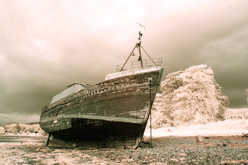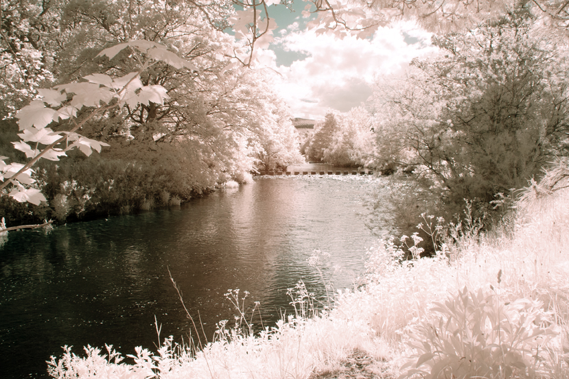 I started out with a Canon 350D (or Rebel XL) DSLR in which the filter over the sensor, which most digital cameras have, to limit the light falling onto the sensor to the visible spectrum (380 nm to 790 nm), had been removed and replaced with a filter which limits the light that falls onto the the sensor to around 720 nm and above in the near-infrared spectrum – in the case of infrared photography, we are usually interested in the range 700 nm to 900 nm. This is a permanent change, you create a custom white balance for your camera and off you go taking photographs. I always recorded .TIFF files and processed them in lightroom. In the early days, I processed them as black and white, usually by turning down the saturation and increasing the contrast – there are better ways of doing this but perhaps I’ll keep that for another post. Recently, I have gone back and re-edited some of these images as described in my previous post using Lightroom and Photoshop – channel mixing, layers, curves after creating a Camera Profile. I was really quite pleased with the results. I thought that they were “special and different” and perhaps some of them were of commercial value but the file sizes were a little small (10 Megapixels camera) for my uses so I went on the hunt for a converted camera with a higher pixel count, what I discovered was a Full-Spectrum camera (at over 20 megapixels).
